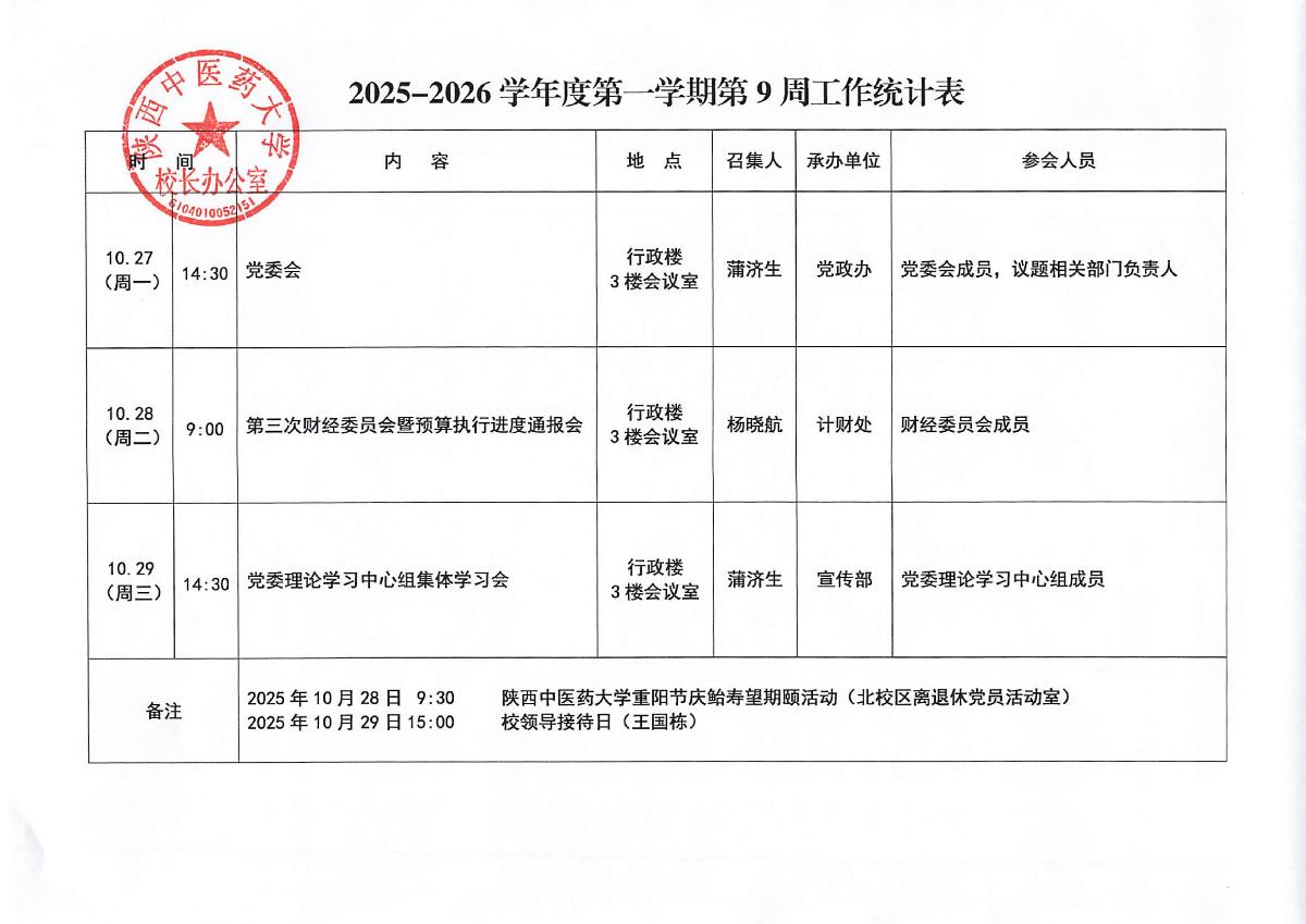 2025-2026学年度第一学期第9周会议安排