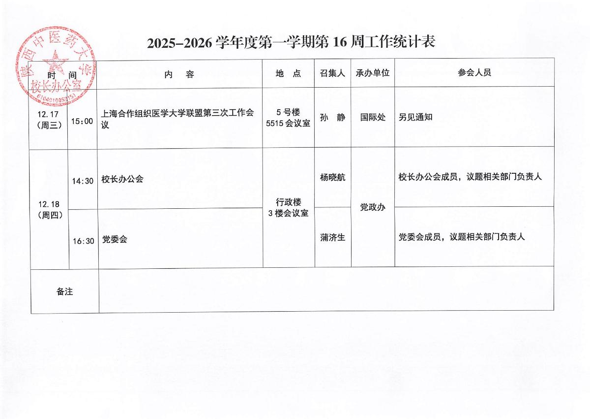 2025-2026学年度第一学期第16周会议安排