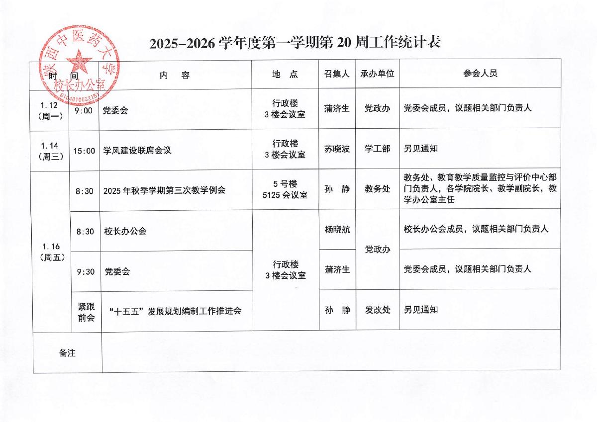 2025-2026学年度第一学期第20周会议安排