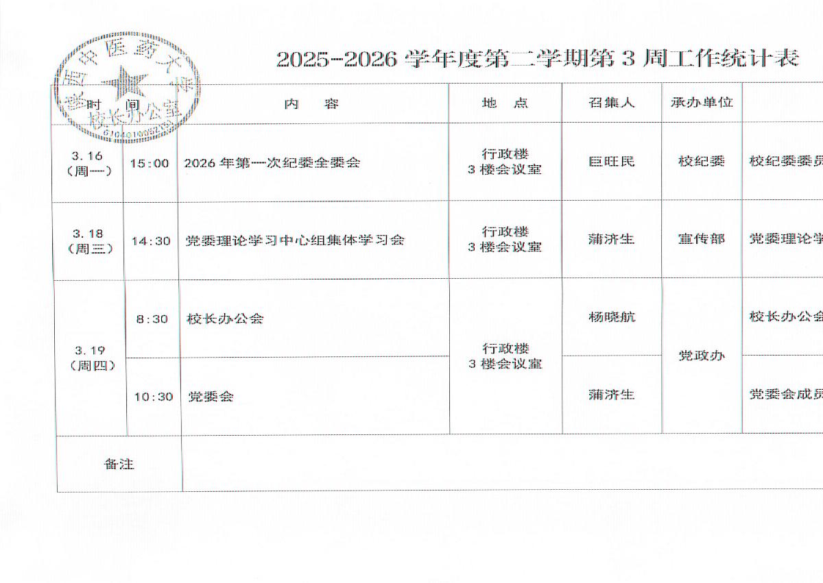 2025-2026学年度第二学期第3周会议安排